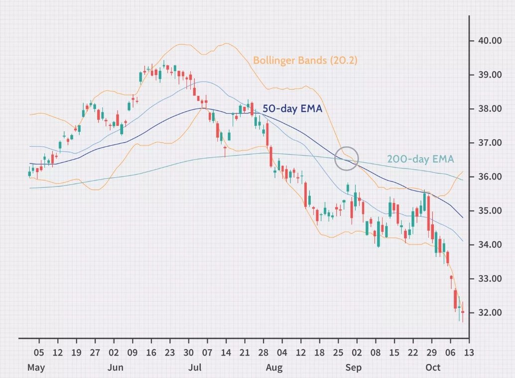 - Death Cross (MA ngắn cắt xuống MA dài): Tín hiệu bán